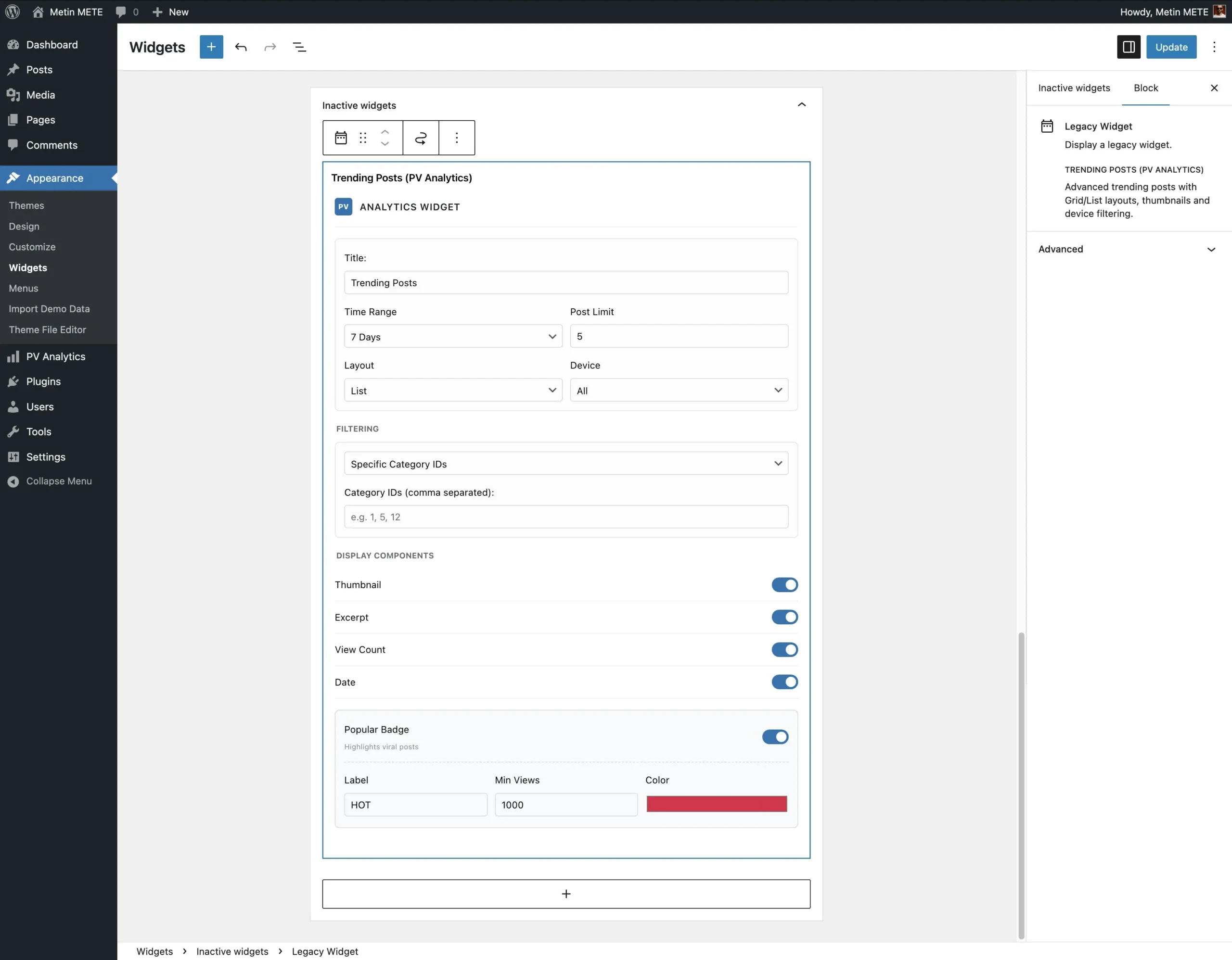 - Install and activate the plugin. Next, configure counter placement and style under PV Analytics → Settings.